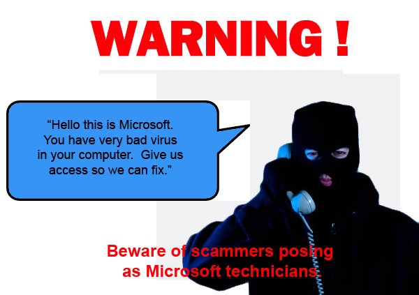 Previous Image Next Image Microsoft scam Beware of Microsoft scam Beware of scammer posing as Microsoft technicians